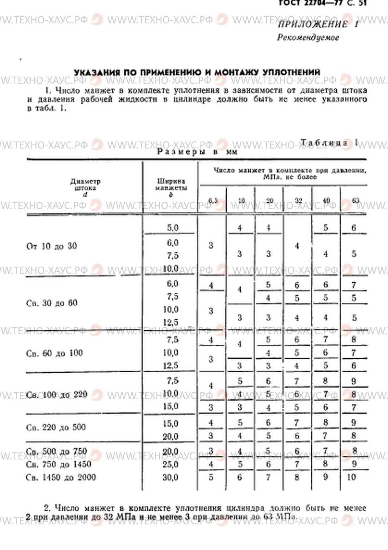 Настоящий ГОСТ распространяется на шевронные уплотнения для штоков и цилиндров гидравлических устройств диаметром до 2000 мм, работающих при давлении до 63 МПа со скоростью возвратно-поступательного движения до 3 м/с в среде минеральных масел, нефти, пресной и морской воды, водных эмульсий при температуре от -50 до +100 ºС.